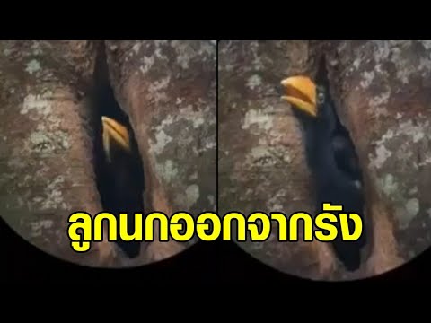 ลูกนกเงือกหัวแรด ออกจากโพรงแล้ว หลังอยู่ในรัง 120 วัน (ดู : 100)